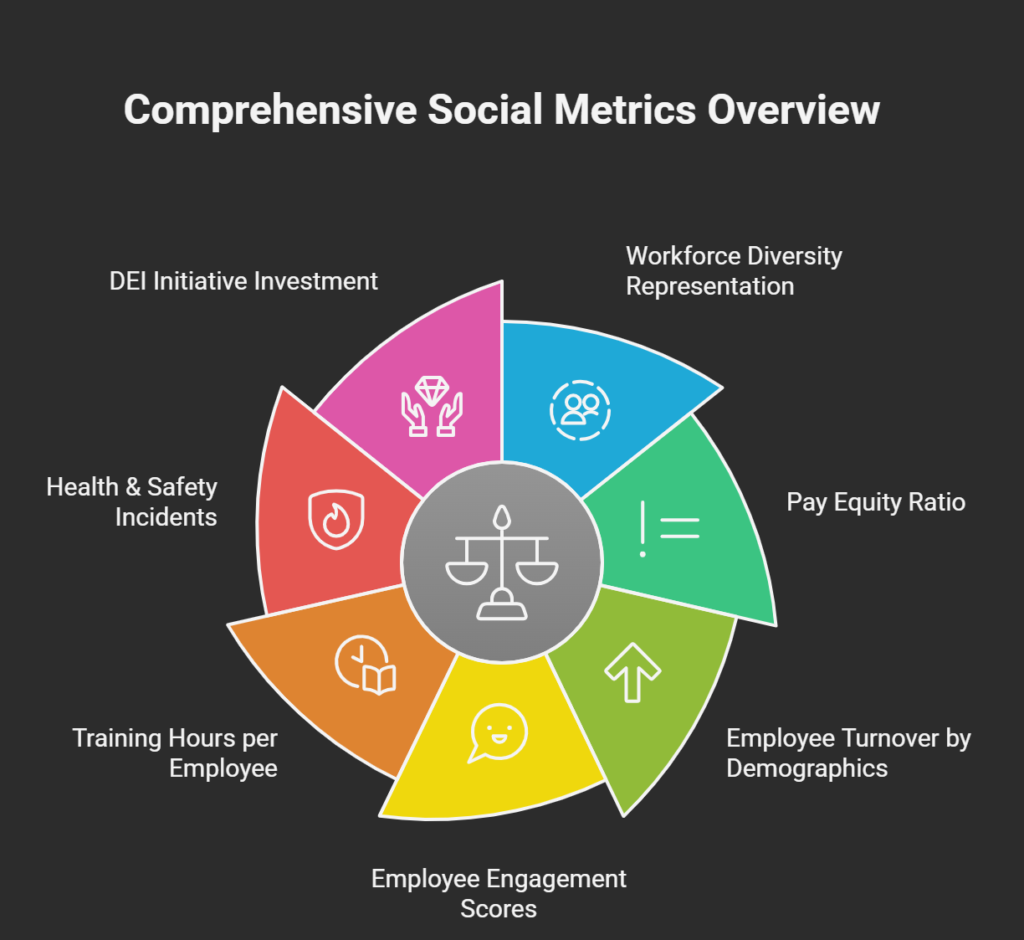 This includes injury rates, lost-time incidents, and near-miss reporting. While traditionally operational, these metrics are increasingly viewed through an ESG lens as indicators of how much an organization values employee wellbeing.