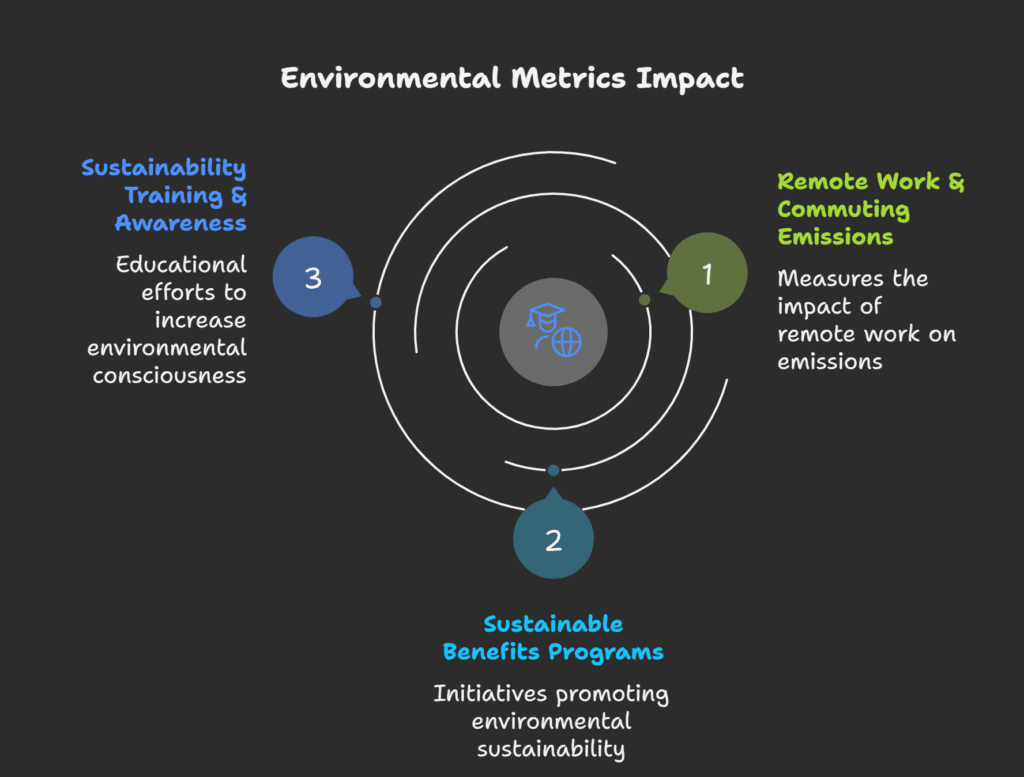 How to measure it: Track uptake of sustainable commuting stipends, electric vehicle benefits, green retirement fund options, and wellness programs that reduce healthcare resource consumption.