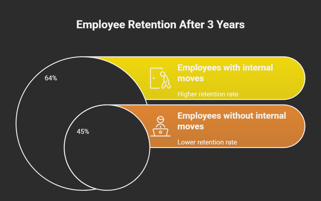 Here’s a stat that should grab your attention: Workers who have moved internally have a 64% chance of remaining with an organization after three years, while employees who haven’t moved internally only have a 45% chance. That’s nearly a 20-point difference in retention—and retention directly impacts your bottom line.