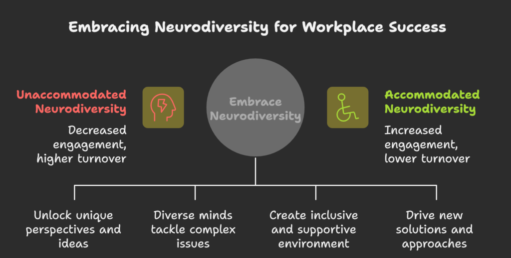 On the flip side, organizations that embrace neurodiversity in the workplace often see improved creativity, stronger problem-solving, and a more loyal workforce.