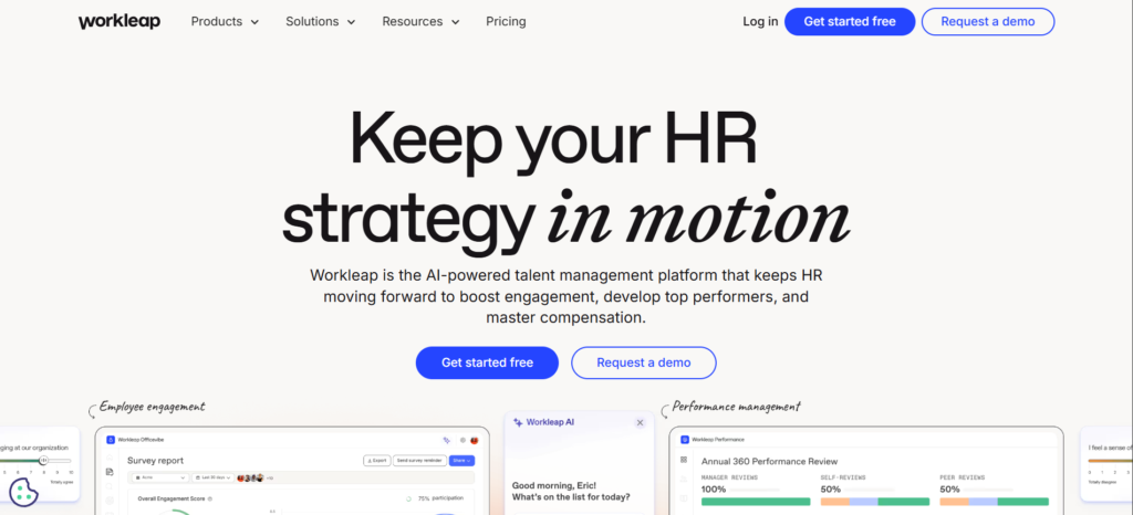 - Leapsome – Integrates OKRs, feedback, surveys, and learning in one suite