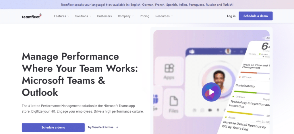 Teamflect is an all-in-one performance management and employee engagement solution built natively for Microsoft Teams and Outlook. It’s the highest-rated performance management tool in the Microsoft Teams app store, designed to keep all HR processes within the Microsoft 365 ecosystem employees already use daily.