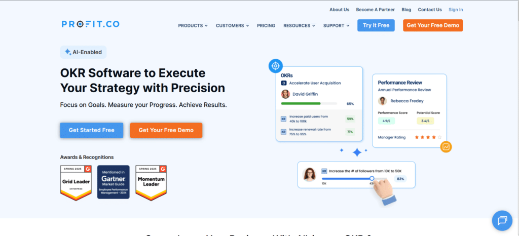 Profit.co is a comprehensive OKR software platform that integrates strategy execution, performance management, task management, and employee engagement into one unified system. It’s designed to help organizations prioritize goals, execute strategies, and build high-performance cultures.
